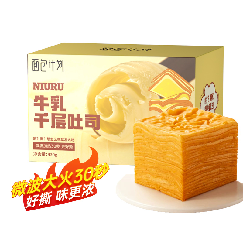面包计划好吃的手撕千层牛乳吐司面包办公零食蛋糕整箱420g