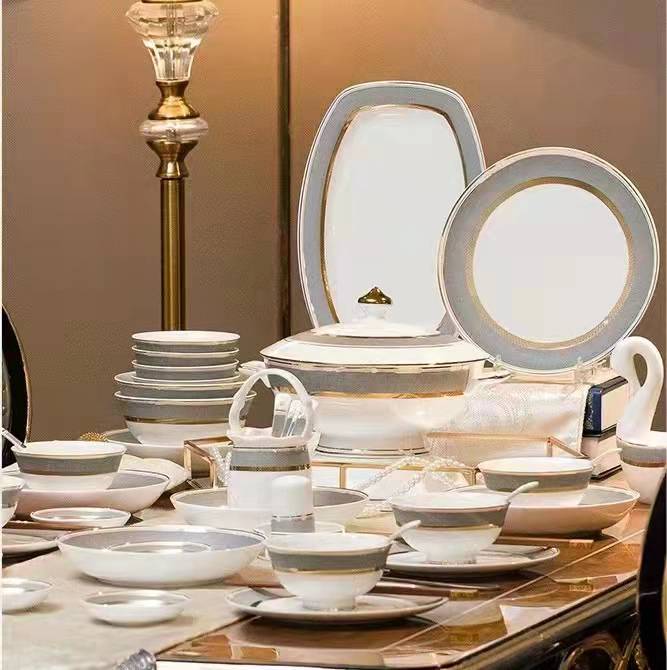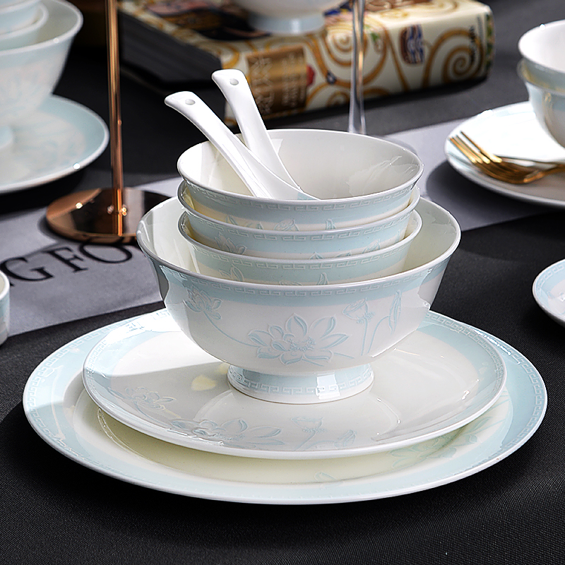 碗餐具景德镇玲珑瓷白瓷陶瓷餐具白色碗盘碟勺碗碟套装家用釉下彩