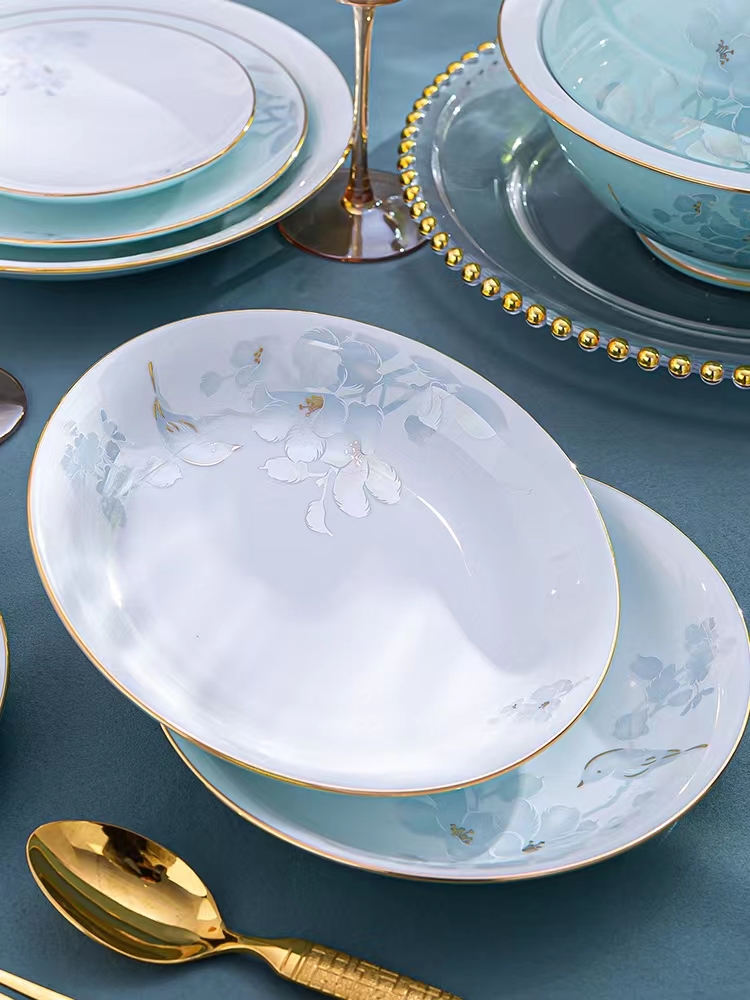 碗餐具景德镇玲珑瓷白瓷陶瓷餐具白色碗盘碟勺碗碟套装家用釉下彩