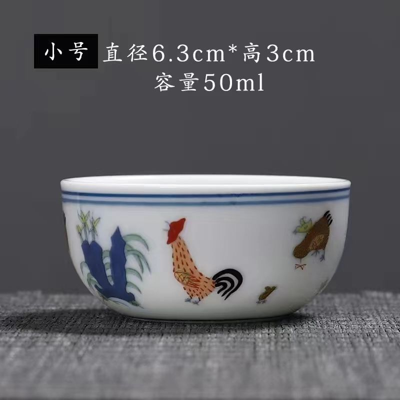 鸡缸杯成化斗彩仿复古豪华高档功夫茶具品茗杯主人杯陶瓷茶杯茶碗