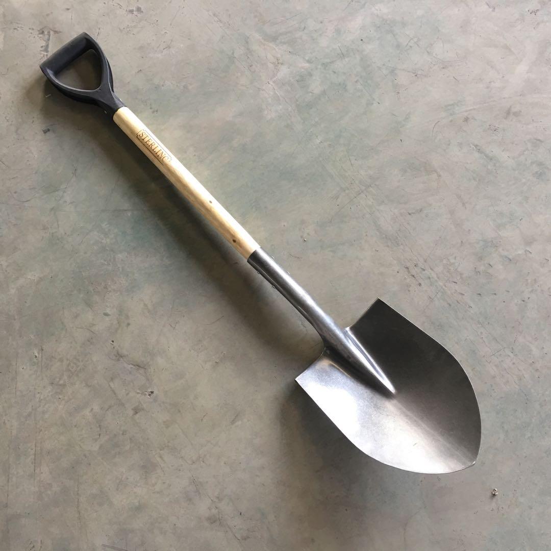 一种圆头的铲,柄端有抓环,用于挖土或挖其他东西