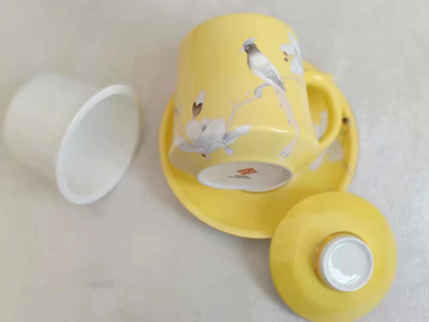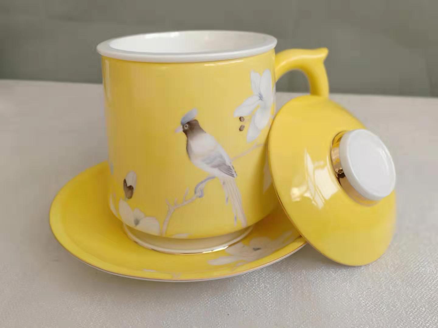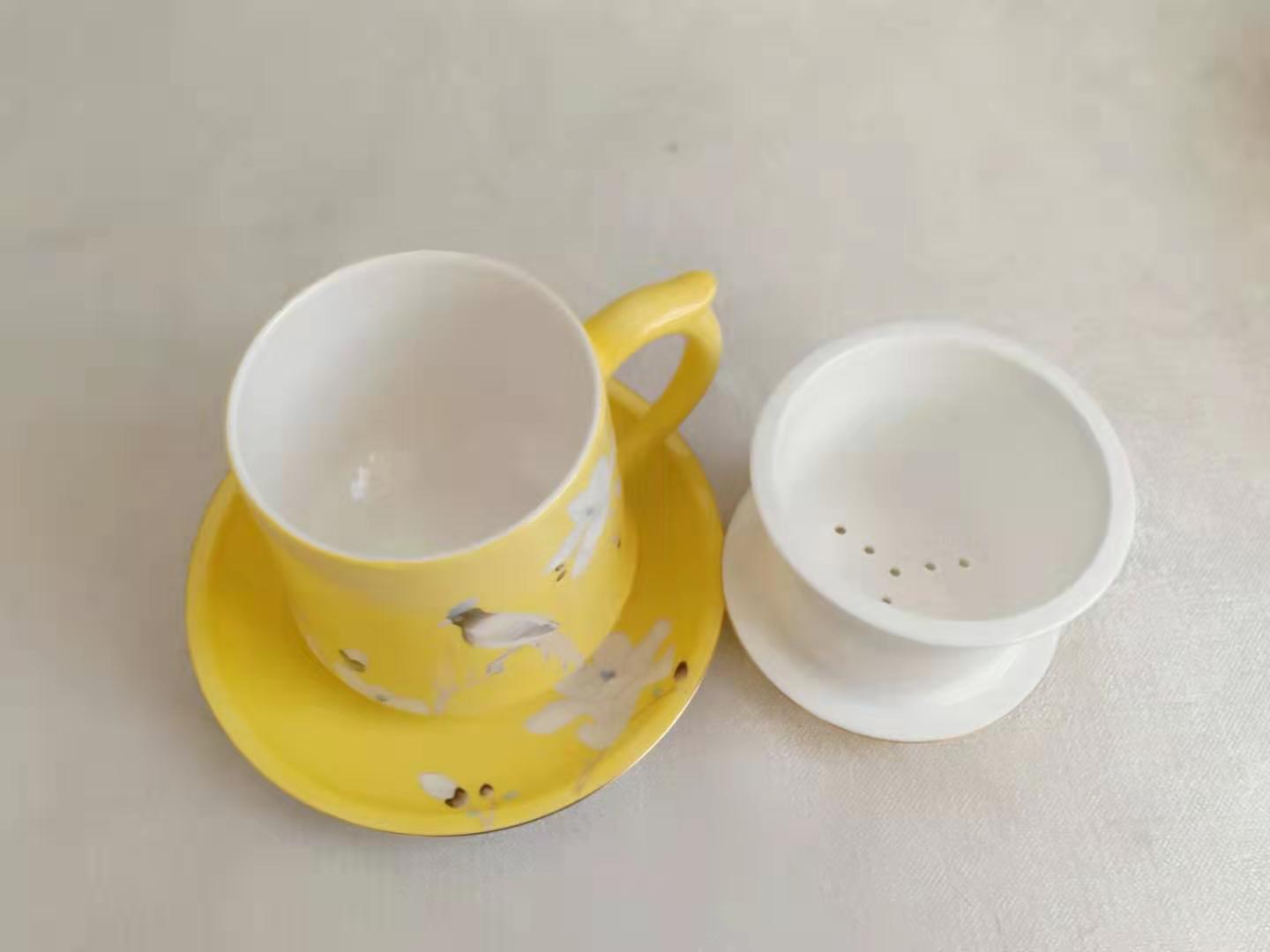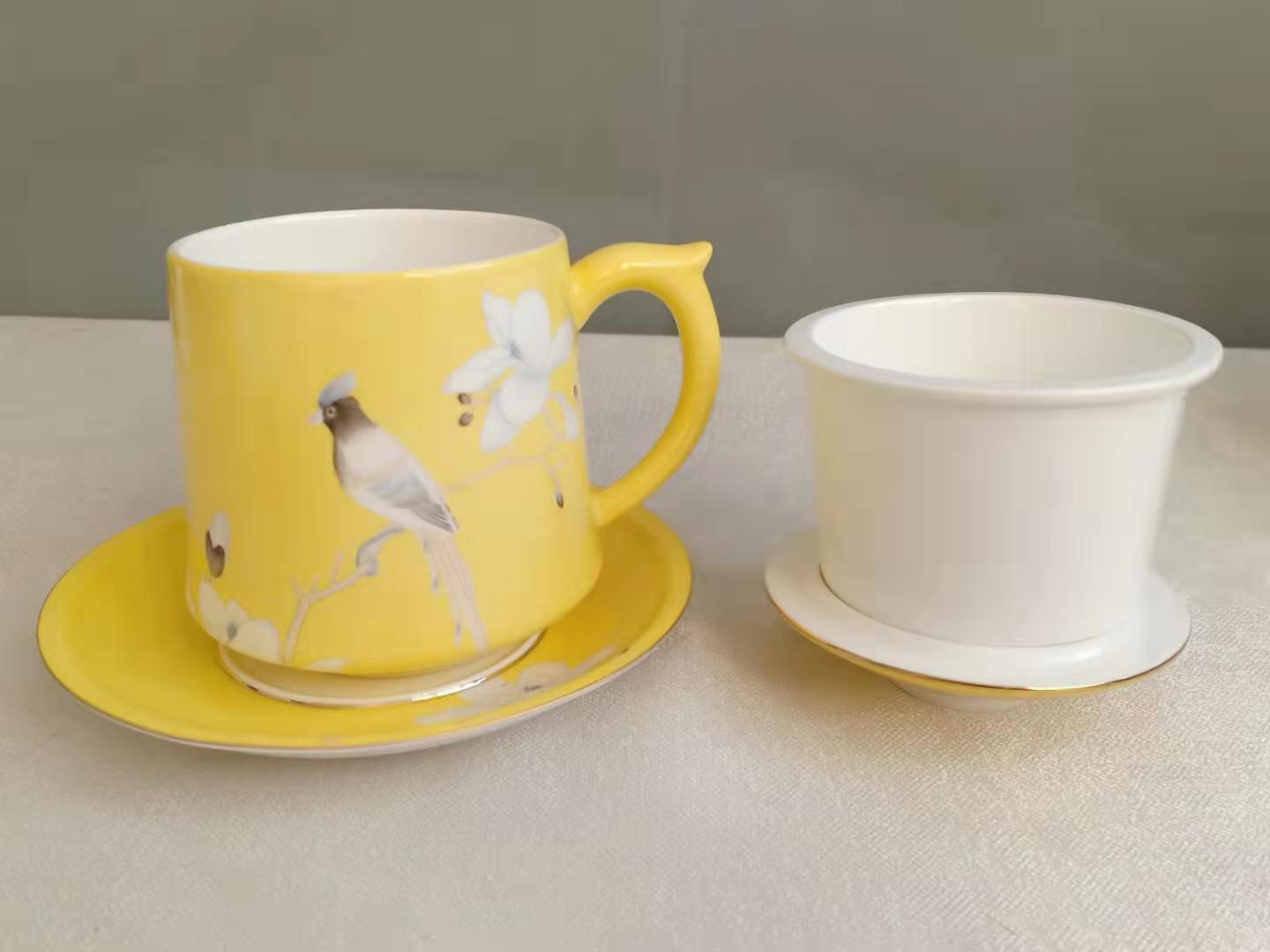 手绘金玉满堂茶漏杯