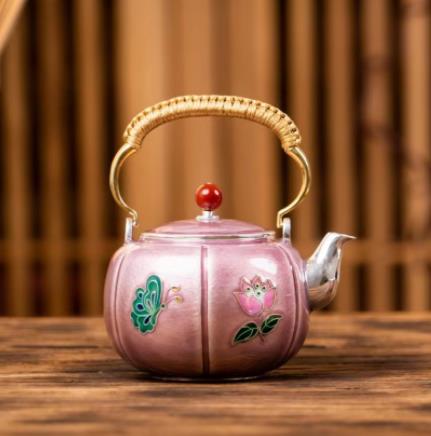 七宝烧蝶恋花小提梁泡茶壶