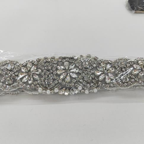 CAWBT009-WT-31花朵形状串珠奢华水钻婚纱腰带