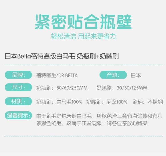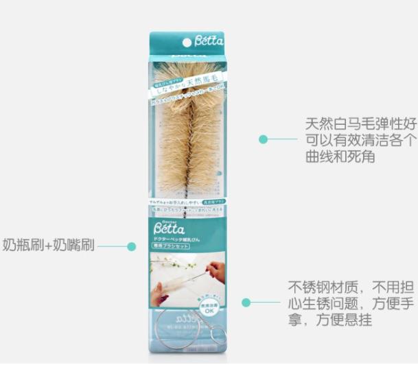 Betta(蓓特)日本原装进口专用清洗马毛刷组合婴儿奶瓶刷宝宝奶嘴刷蓓特奶瓶专用马毛刷+奶嘴刷 Betta马毛刷新包装