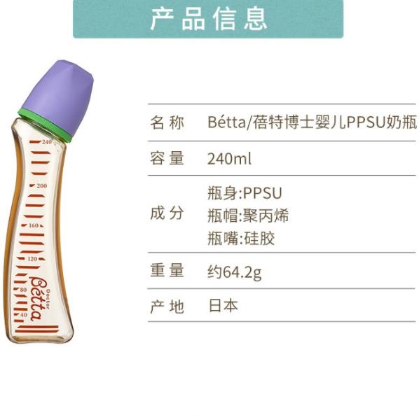 Betta(蓓特)奶瓶奶嘴新生儿减少呛奶PPSU奶瓶日本原装进口母婴用品婴儿防胀气仿母乳防摔塑料奶瓶 宝石&单色彩带(绿色) S1-240ml