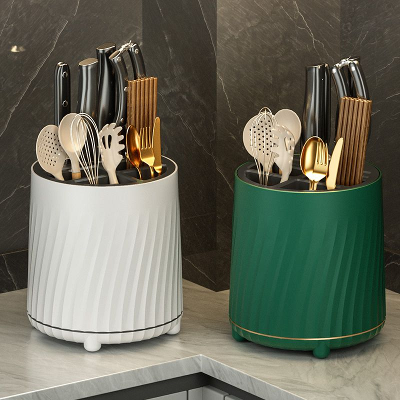 厨房旋转刀架置物架家用台面碗筷子筒笼菜刀具一体收纳盒勺子刀座