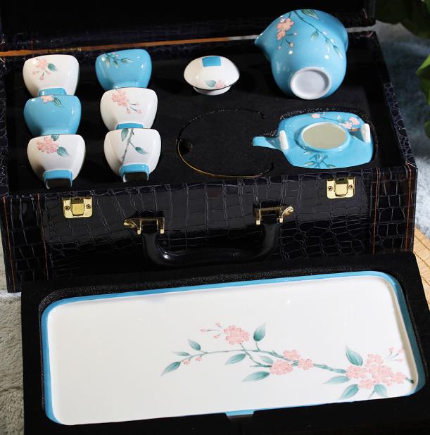 手绘盛世蓝茶具(梅花)唐山骨质瓷