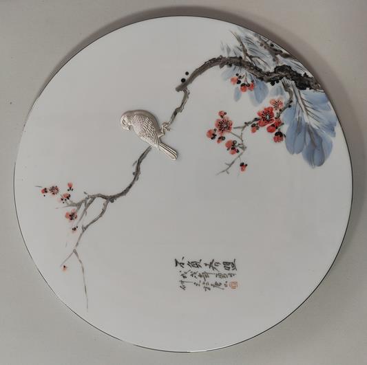 五洲金行金瓷故事银瓷花鸟盘